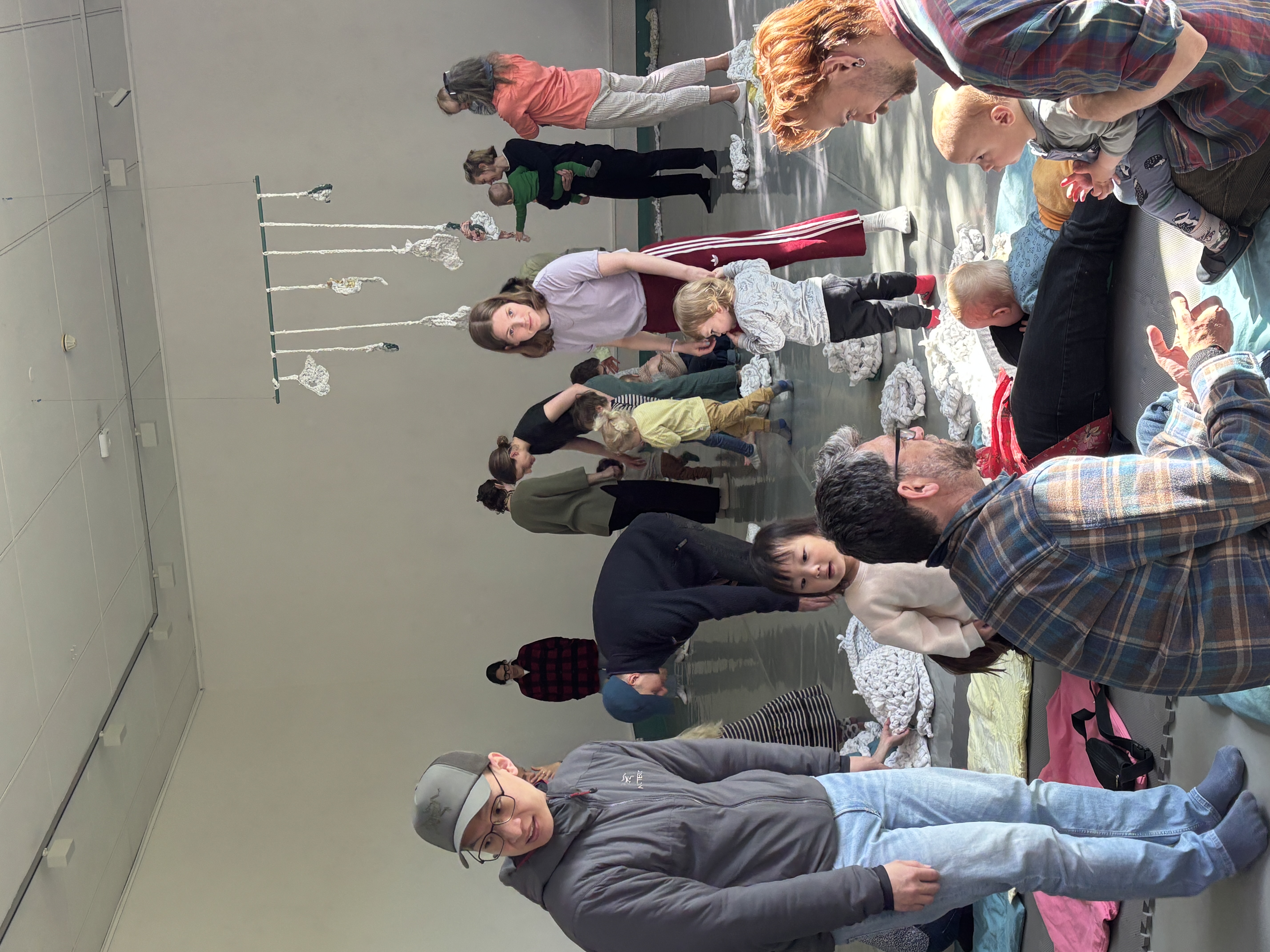 Homeground is an interactive installation designed specifically for caretakers and their children (ages 0–3), open to the public at Gamle Munch in Tøyen from 26 April to 7 May 2025. Within the installation, visitors could experience the performance Building Beginnings or take part in the crochet workshop Knot. The project aimed to create a safe and welcoming space for collaborative play, focusing on how we can re-arrange our bodies in relation to one another and the surrounding environment.